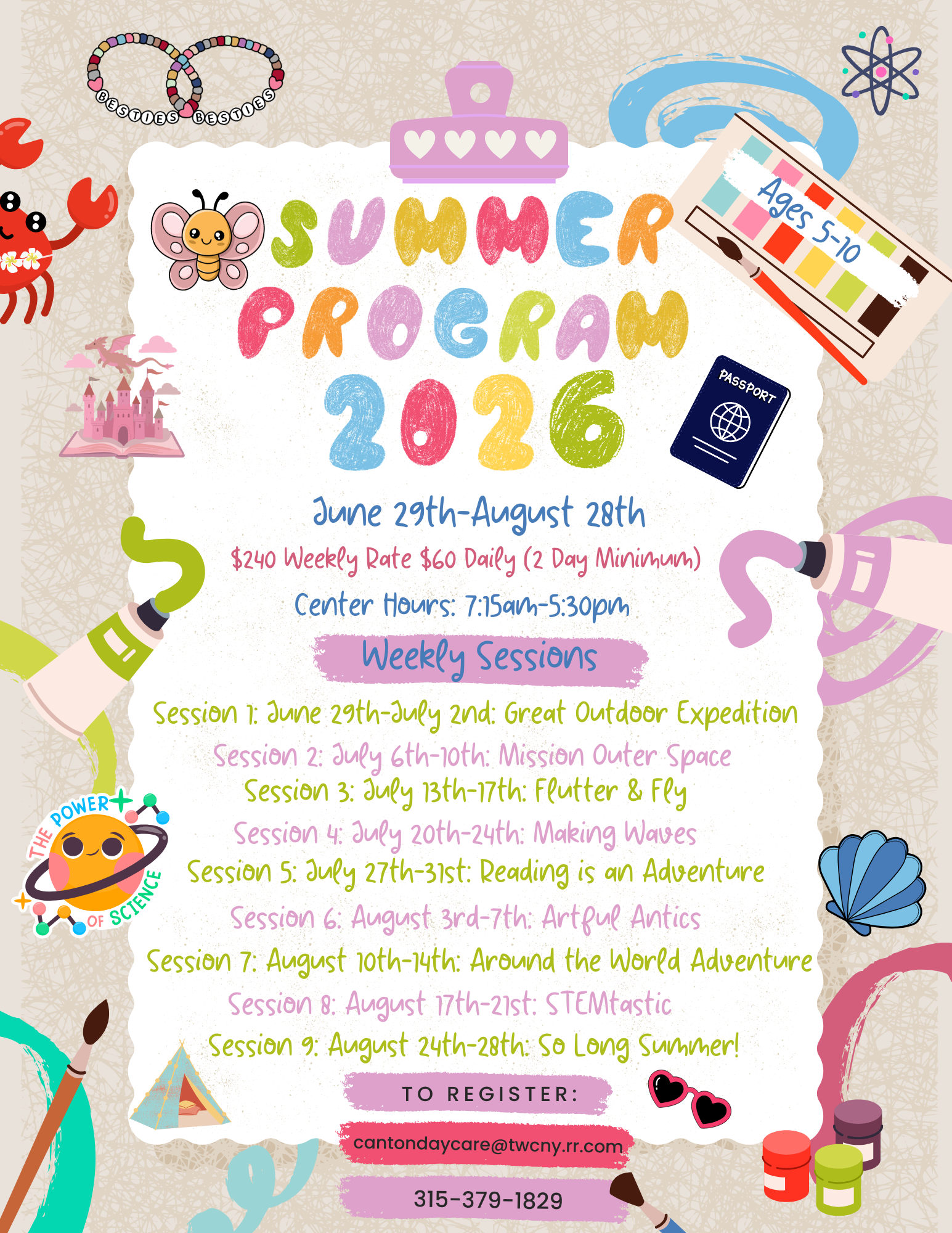June 29th-July 2nd (Center will be CLOSED Friday July 3rd, 2026)