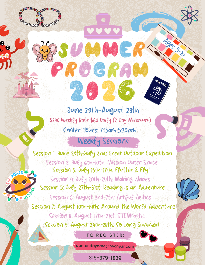 We’re ready to dive into summer fun with Beach week: Making Waves! Our classroom will transform into a seaside adventure filled with ocean exploration and sandy sensory play. During this fun-filled week, children will explore all the exciting things that make the beach such a special place. From sandy shores and ocean waves to seashells and sea creatures, the beach will inspire our activities, games, and creative projects.
